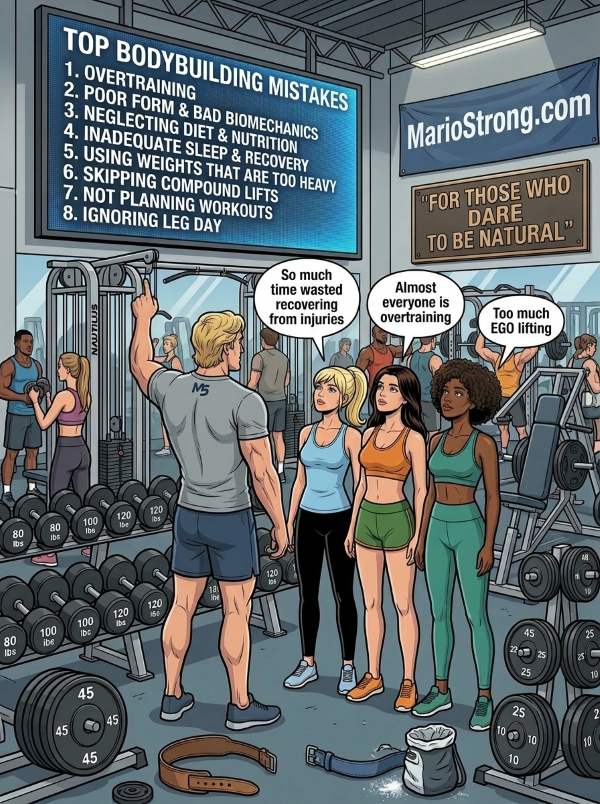 By Mario Strong BEGINNING BODYBUILDING The idea of joining a health club can be intimating to the beginner. After all, isn’t everyone going to be extraordinarily built and strong? Not necessarily, you see, most gyms are stocked with members trying to either lose unwanted body fat or add some muscle to their frame. Luckily, these days there are plenty of clubs from which to Guys train with weights for lots of reasons. Today, before I ever begin to design a workout program for any of my new students, I first learn what kind of person I am dealing with. I learn about their athletic background, asking them if they have ever trained with weights before, and if so, what principles they used and for how long. I check to see if they ever participated in any sports such as gymnastics, football, swimming, etc. I ask them if they have a history of injuries, and I learn about their goals, as I try to find out just what they seek in our sport. In general, I try to educate myself on the person to which I will be offering training advice. Through my experience, learning about the type of person I am dealing with saves the both of us time and energy. As soon as I begin understanding my new student’s goals, I start to explain what natural bodybuilding is all about. At my Staten Island Bodybuilding Club I tought my members about some of the basic benefits derived from our sport such as improved overall physique, increased physical strength, the ability to rid unwanted stress, added personal confidence, improved athletic capabilities, a better general appearance with a more positive outlook on life, and of course, (starting right with the first workout) a substantial increase in one’s health. After the novice begins to understand what natural bodybuilding is all about I then proceed to lay out an exercise program designed to meet his or her needs.